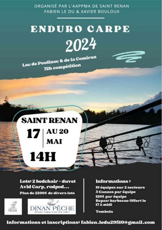"Merci à tous ,j'ai toujours organisé avec passion cet enduro, puisque la PÊCHE de la carpe est ma passion, depuis presque 50 ans. J'ai acté pendant plus de 30 années avec l'aide de L'AAPPMA Saint Renan à promouvoir cette pêche, maintenant place aux jeunes. Encore merci à vous, c'est super d'organiser des événements comme ça , on fait des connaissances, j'ai rencontré des super personnes, A bientôt au bord de L'eau