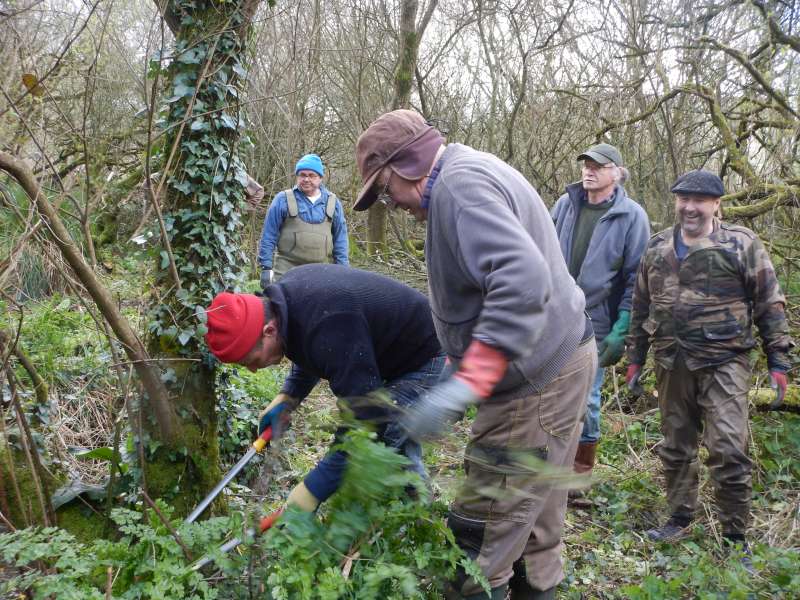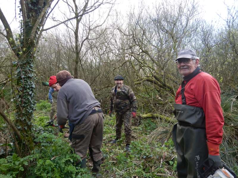 Les travaux de ces 2 journées sont regroupés, l'effectif est très réduit pour cause de vacances, notre Gégé trop occupé avec sa débrousailleuse pour arroser ses camarades... Tous les postes sont nettoyés pour le confort des pêcheurs.