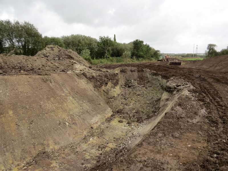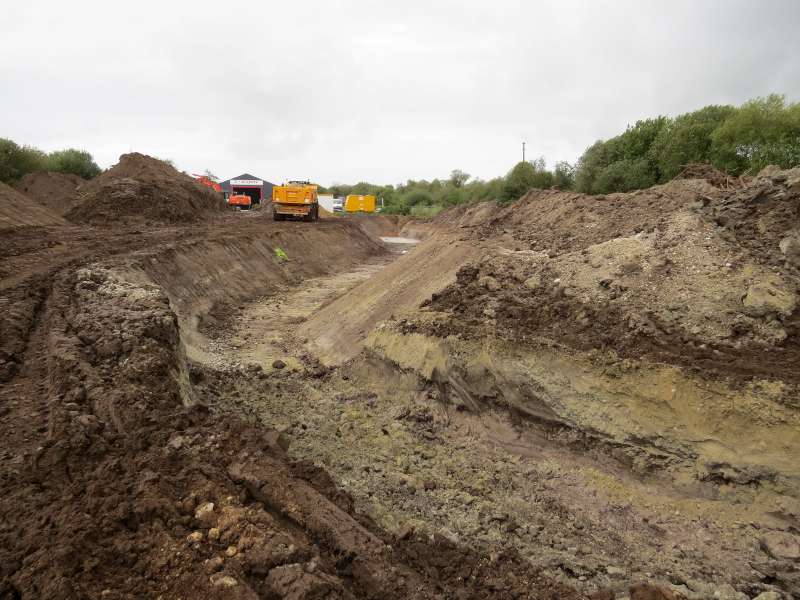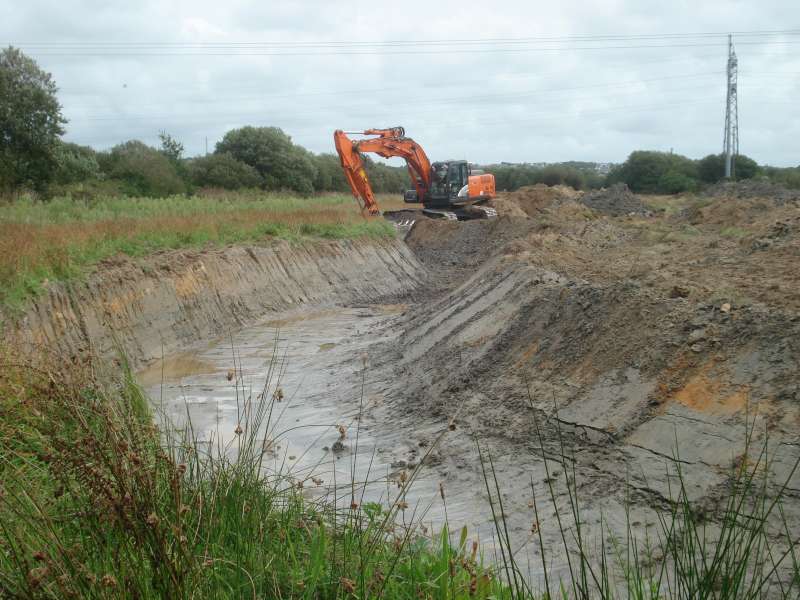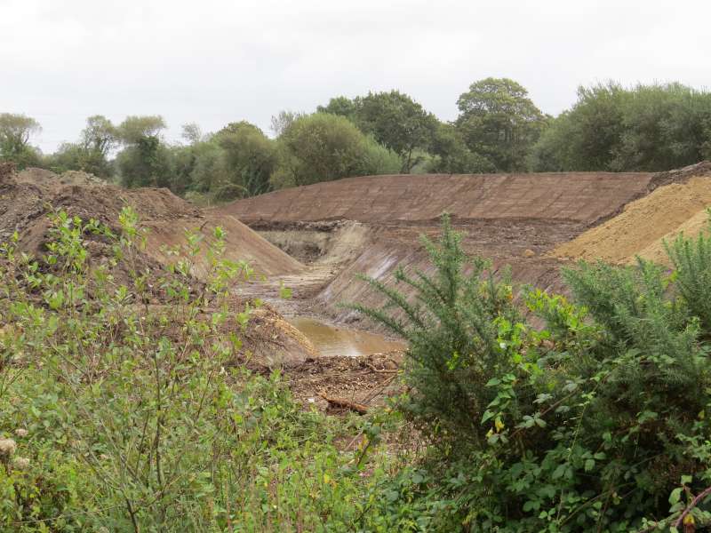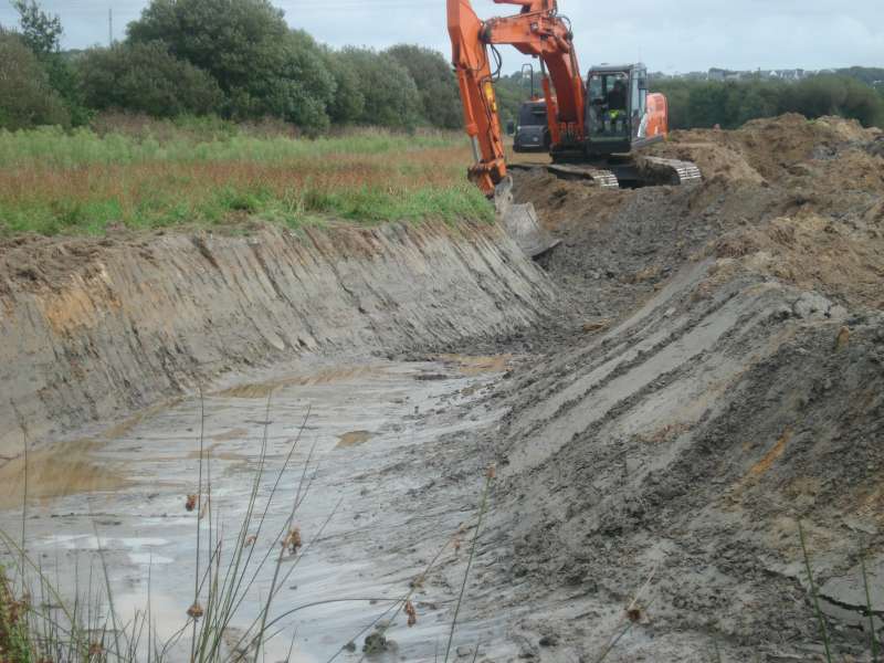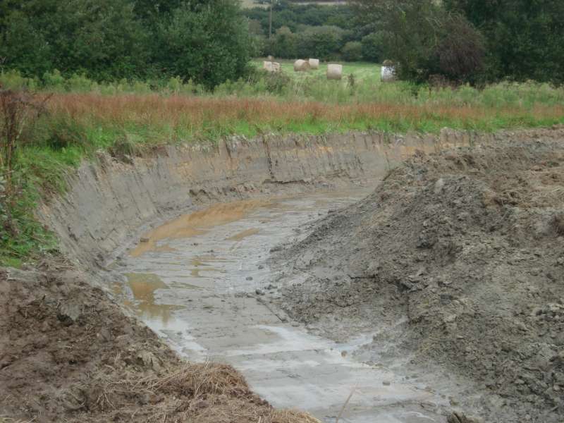 La première section, au niveau de l'entreprise "Madoc" est creusée, et quelques aménagements sont déjà réalisés (banquettes, blocs de roche)