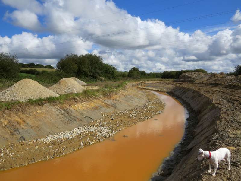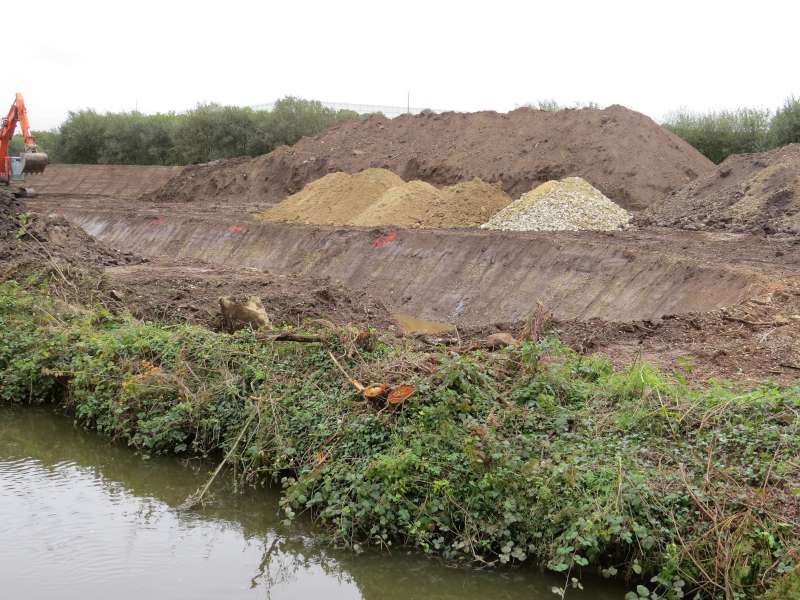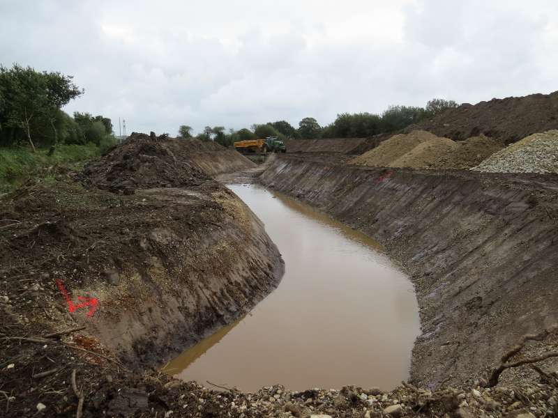 Seule la dernière section est toujours isolée par les batardeaux. Une bonne partie de l'ancien lit est déjà comblée